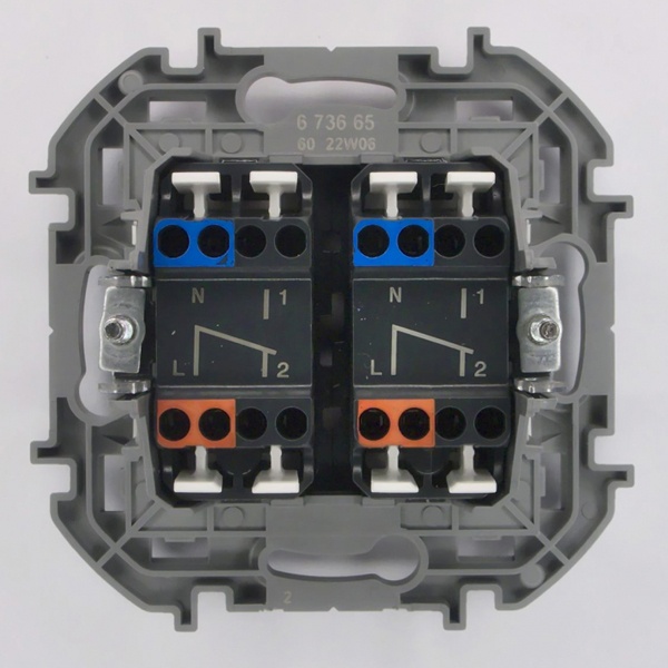 Переключатель двухклавишный с подсветкой компании Legrand серии Inspiria белого цвета предназначен для скрытого монтажа и используется для управления нагрузкой с одного, двух или более мест, совместно с промежуточными выключателями. Он устанавливается в электрических сетях жилых и общественных зданий с напряжением 250 Вольт и силой тока 10 Ампер и применяется для управления приборами освещения и вентиляции. Схема подключения проходного переключателя рассчитана на 2 направления. Переключатель оснащен светодиодной лампой для подсветки. Благодаря свободной схеме подключения, лампа подсветки либо облегчает ориентирование в темноте, либо информирует о включении нагрузки. В качестве подсветки служит универсальная LED-лампа белого цвета с низким энергопотреблением 0,125 мАмпер и возможностью замены. Материал клавиши выключателя – глянцевый пластик АБС, клавиша оборудована линзой для заметного светового сигнала индикации. Для подсоединения проводов используются винтовые зажимы. Все токоведущие части выключателя имеют защиту от случайного прикосновения. Его размеры составляют: 75,8х75,8х41 мм. Степень защиты изделия IP20.