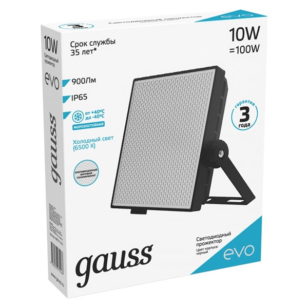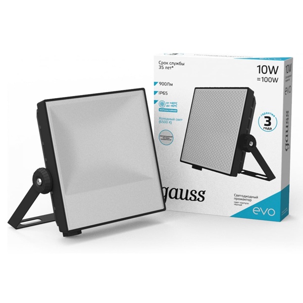 • Прожектор светодиодный Gauss EVO 10W 6500K 900lm IP65 черный