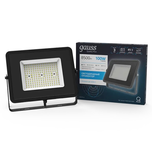 • Прожектор светодиодный Gauss Qplus 100W 6500K 8500lm IP65 графитовый