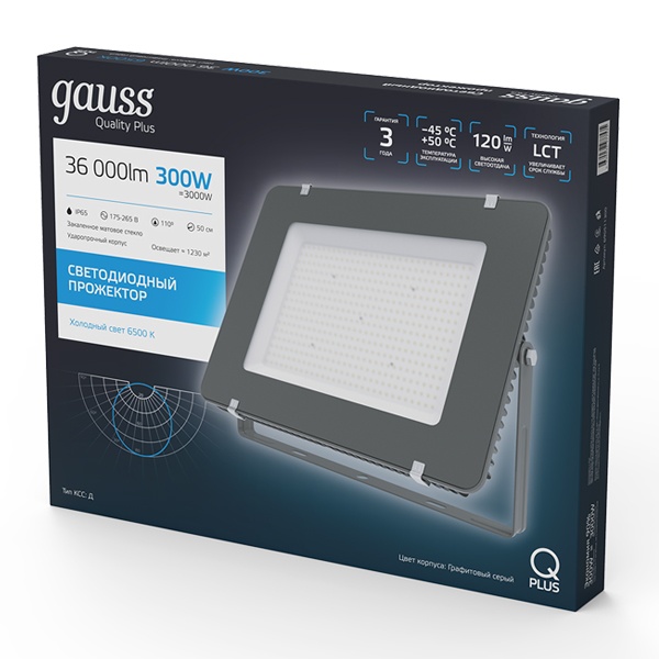 690511300 Прожектор светодиодный Qplus 300W 6500K 36000lm IP65 графитовый Gauss фото 4