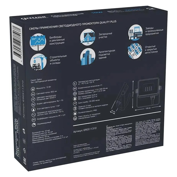 Влагозащищенный, прожектор Гаусс Qplus мощностью 10 Ватт, холодный дневной свет, цвет графитовый серый 690511310