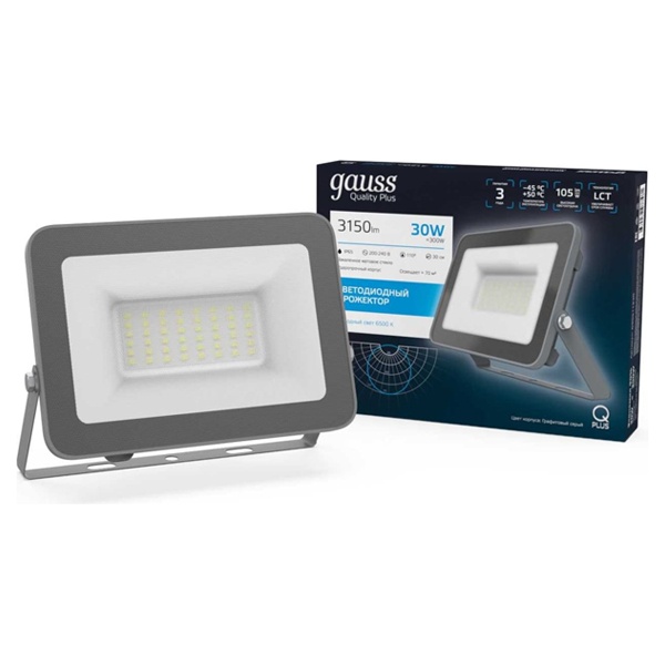 • Прожектор светодиодный Gauss Qplus 30W 6500K 2550lm IP65 графитовый