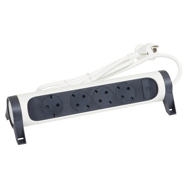 Поворотный удлинитель с 4мя розетками немецкого стандарта и выключателем, длина шнура 3 метра, цвет бело-черный, Legrand Комфорт. 694536