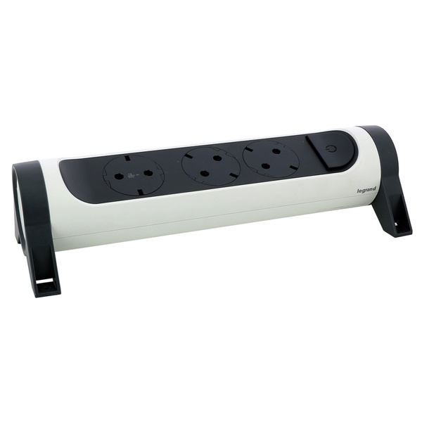 • Колодка электрическая на 3 розетки 2P+E с выключателем и поворотным основанием бело-черная Legrand