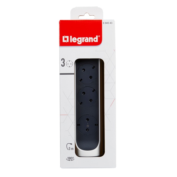 694543 Колодка электрическая на 3 розетки 2P+E с выключателем и поворотным основанием бело-черная Legrand