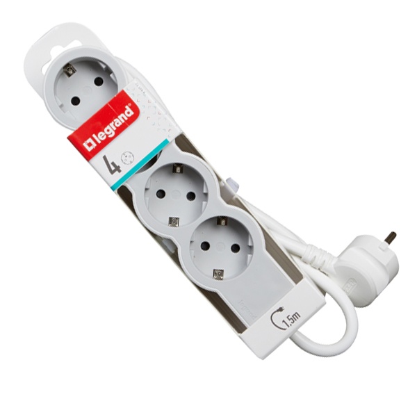 • Удлинитель Стандарт 16А 4x2К+З с кабелем 1,5м бело-серый Legrand