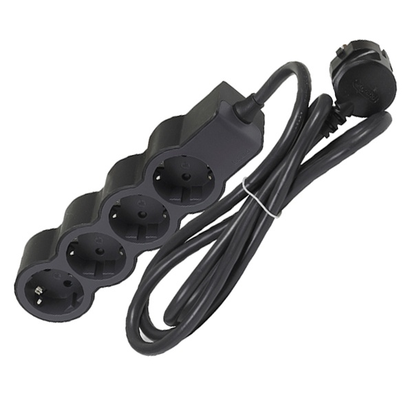 Удлинитель серии «Стандарт» Легранд на 4 розетки с заземлением, с кабелем 1,5 метра, черного цвета 694553