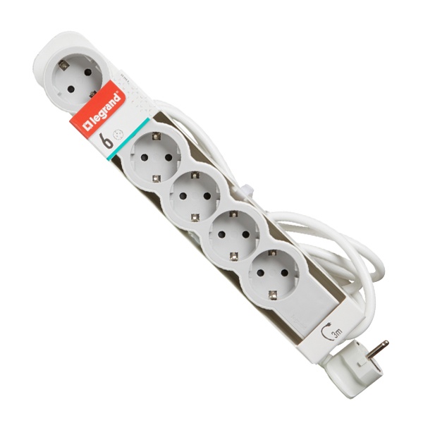 Удлинитель серии «Стандарт» Легранд на 6 розеток с заземлением, с кабелем 3 метра, бело-серого цвета 694565