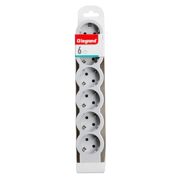 Розеточная колодка на 6 гнезд 16 A с заземляющими контактами и шторками Легран для удлинителя 694579