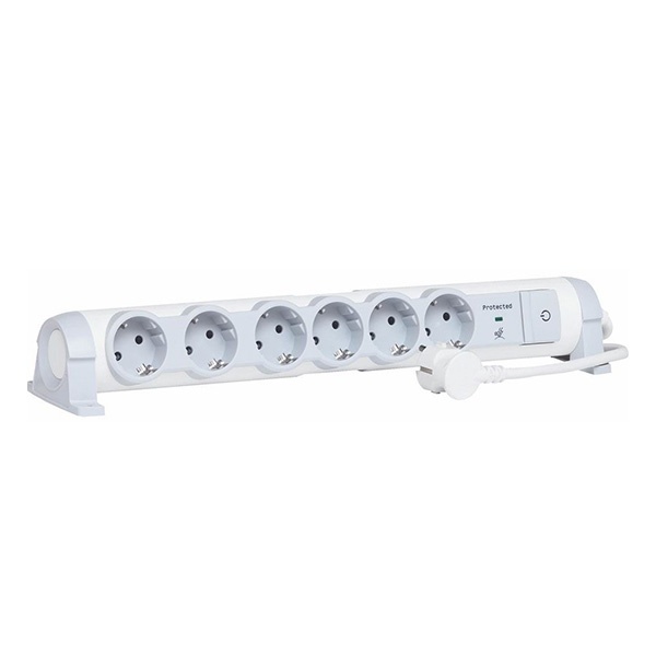 Вся электроника, используемая в быту, необычайно чувствительна к любым перепадам напряжения, которые пусть и не выводят разово из строя бытовые приборы, но способны значительно снизить их расчетный период эксплуатации.Представленное здесь изделие, от известного европейского производителя электротехники – компании Legrand, предназначается для безопасного распределения электрической энергии. Данное изделие является модульным блоком на шесть силовых розеток. Оно оснащено защитой от перепадов напряжения.Розетки данного блока оснащены дополнительным заземляющим контактом, который обеспечивает полную безопасность пользователя в случае неисправности подключенных устройств. Штекерные вводы изделия развернуты под углом 45 градусов, что делает более удобным и простым подключение устройств ко всем разъемам. Данный блок может легко и свободно менять позицию по отношению к опорам. А если возникнет необходимость, изделие может быть установлено на вертикальную поверхность.Данное изделие имеет клавишу общего выключателя, снабжённую индикацией, которая отображает рабочее состояние устройства. Расчетная величина нагрузки блока составляет 3,5кВт.Гарантирует защиту электрического и электронного оборудования, а также телефонных линий от перенапряжения и электрического разряда.Кнопка сигнализации состояния разрядника (индикатор светится – оборудование защищено, индикатор не светится – удлинитель неисправен и требует замены).Защищенные разъемы с износоустойчивостью на 10000 операций, выключатель с индикатором. Расстояние между розетками наиболее оптимально, позволяет подключать трансформаторы, зарядные устройства и т.п. Поставляется с самофиксирующим хомутом для кабелей.Характеристики: Сила тока - 16А Номинальное напряжение - 220 Вольт Степень защиты - IP20 Максимальная нагрузка - 3500 Ватт Тип 2K+З (2 штырьевых контакта c заземлением) Длина сетевого шнура - 1,5 метра Цвет - белый