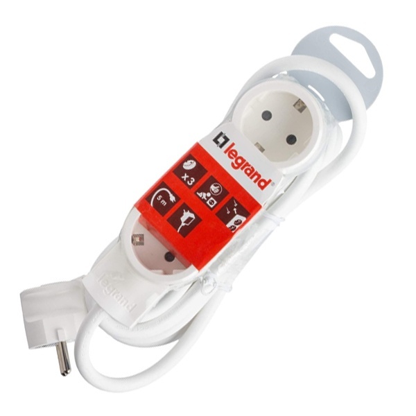 Удлинитель серии «Стандарт» (695003) Легранд на 3 розетки с кабелем 5 метров 695003