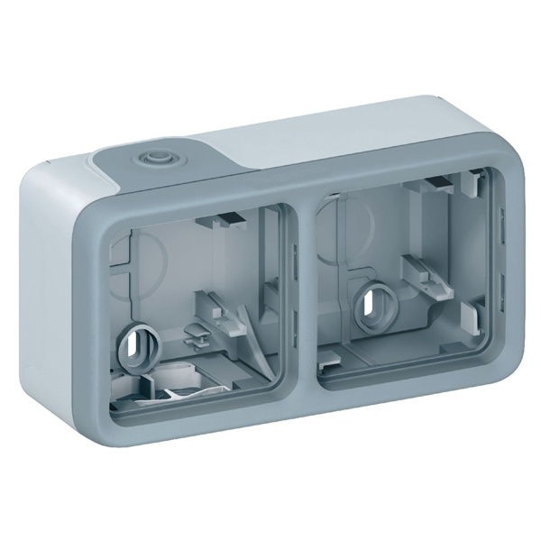 Горизонтальная коробка для накладного монтажа (69672) на 2 поста серого цвета фирмы Легранд (Legrand) серии Плексо (Plexo) со степенью защиты IP55 069672