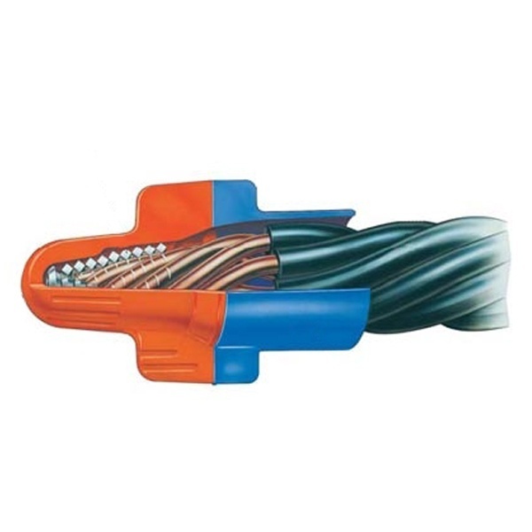 Внутри соединителей установлена пружины с усовершенствованной формой, благодаря которой она как бы «вгрызается» в металл проводника. Внутренняя подвижная пружина с заостренным краем скручивает провода, фиксирует их и создает надежный электрический контакт. За счет расширения и сужения пружины соединитель адаптируется к разным сечениям проводов. Эластичная юбка не трескается и гнется вместе с проводами, а дизайн корпуса комфортен для работы.