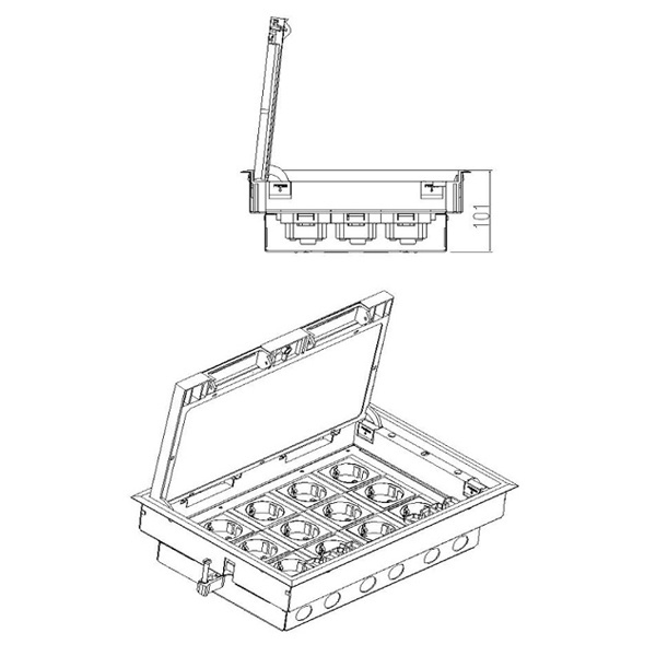 Системы лючков интегрируются с кабельными трассами, расположенными в полу и/или непосредственно в закладных полах (в случае монолитного бетонного пола) и устанавливаются непосредственно в плиты фальш-полов или на залитые в бетон посадочные коробки.