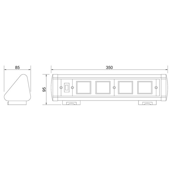 Блок розеточный, настольный для крепления к столу с выключателем нагрузки Экопласт на 4 модуля(45x45мм)алюминий 70304