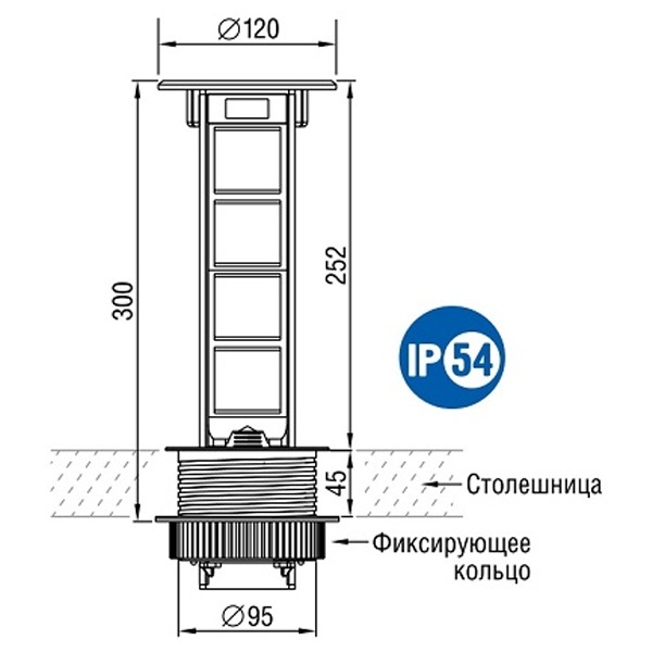 Блоки розеточные встраиваемые рассчитаны на 4 электроустановочных изделий стандарта 45x45 мм, представляют собой жесткий профиль, изготовленный из алюминия с розеточными панелями.