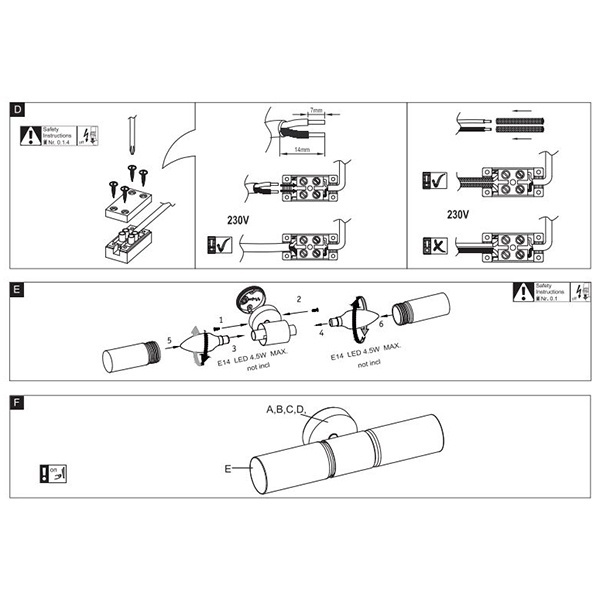 - Кол-во цоколей и их сумм. мощность: 2xE14 max 40 Вт