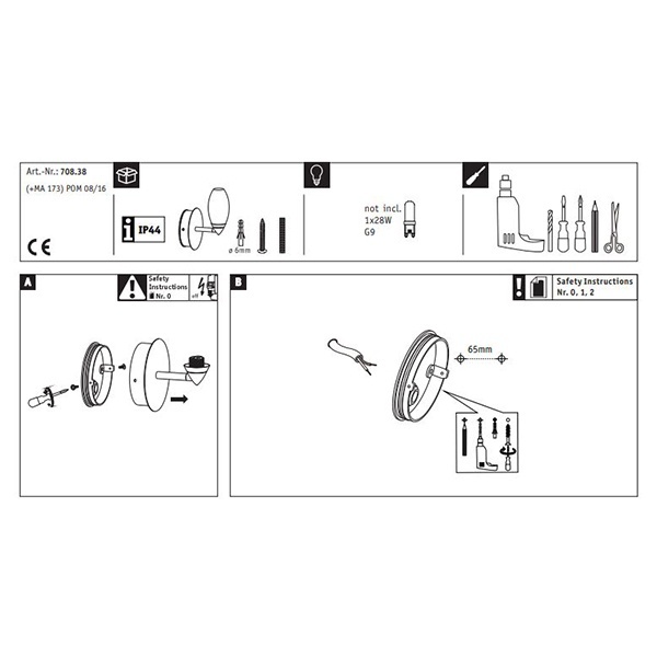 - Кол-во цоколей и их сумм. мощность: G9 max 28W