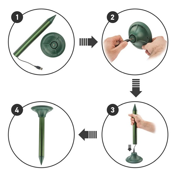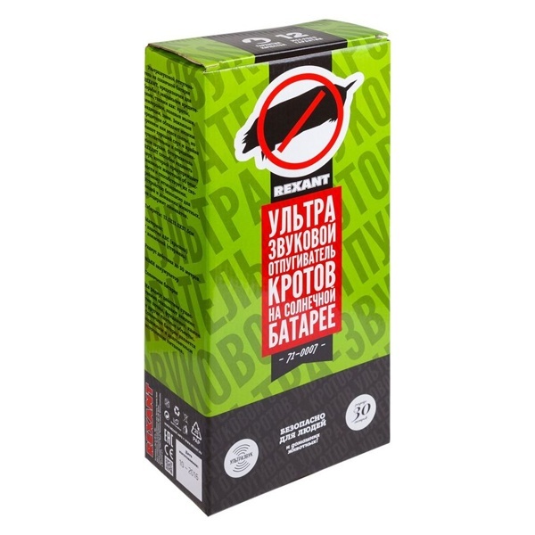 Ультразвуковой отпугиватель на солнечной батарее REXANT используется для борьбы с земляными вредителями, такими как: кроты, землеройки, полевые мыши, медведки, змеи. Земляные вредители обладают низким зрением или вовсе слепы, но имеют хороший слух и крайне чувствительны к определенным типам вибрации почвы. Отпугиватель REXANT способен создавать вибрацию, которая предупреждает земляных животных об опасности и способствует их скорейшему исчезновению. Устройство безопасно для людей и домашних животных, не содержит химикатов.