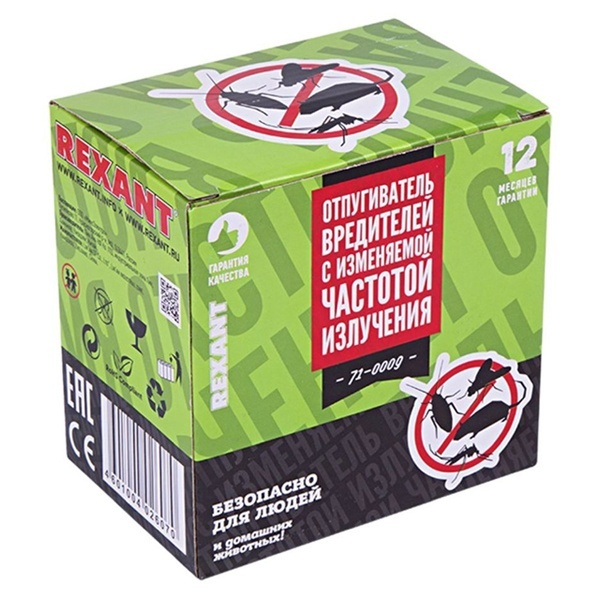 Отпугиватель вредителей с изменяемой частотой излучения является безопасным, компактным, простым в эксплуатации устройством, обеспечивающим надежную защиту помещения от вредителей. Для людей и домашних животных не представляет опасности.