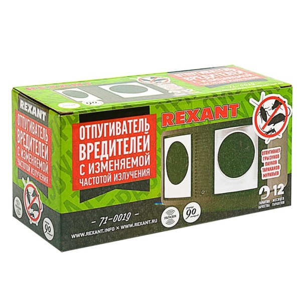 Отпугиватель вредителей REXANT с изменяемой частотой излучения используется для отпугивания грызунов, пауков, тараканов, муравьев, моли и других вредителей путем излучения ультразвуковых волн на дискомфортных для них частотах. Регулятор частоты излучения позволяет менять частоту сигнала воздействия, тем самым препятствуя привыканию у вредителей.