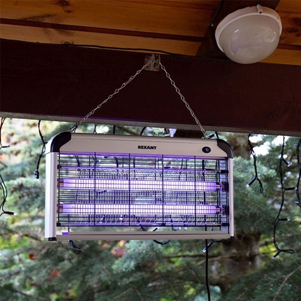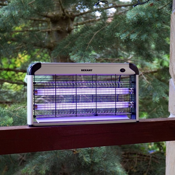 Антимоскитная лампа Рексант - современное экологически безопасное средство по борьбе с комарами, москитами, мошкой, мотыльками и другими летающими видами насекомых внутри помещения. Устройство излучает ультрафиолет и нагревается, тем самым имитирует млекопитающих животных и манит насекомых. Насекомые, подлетая, получают смертельный удар током от металлической сетки под напряжением.