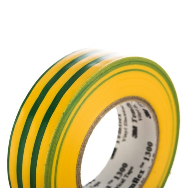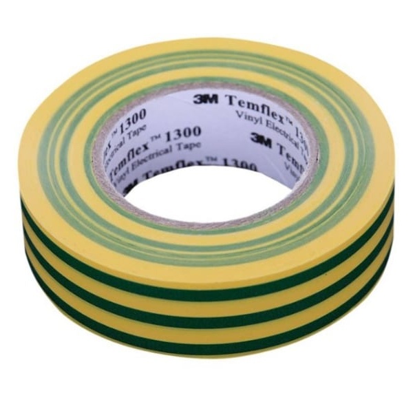 Качественная электроизоляционная лента для общего применения ПВХ 3M Temflex 1300 желто-зеленая 19мм х 20 метров 7100080346