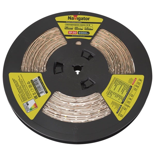 Светодиодная лента мощностью 4,8 Ватт на метр, с напряжением 12 Вольт, холодный дневной свет, ширина ленты 8 мм 71245