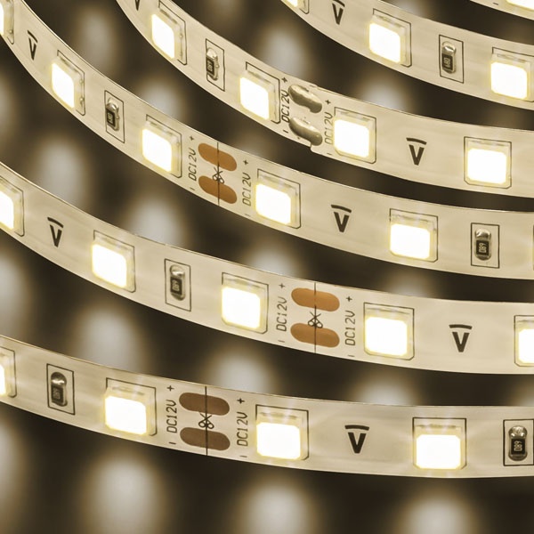 Светодиодная лента мощностью 30 Ватт на метр, с напряжением 12 Вольт, теплый белый свет, ширина ленты 10 мм, длина в ролле 5 метров 71699