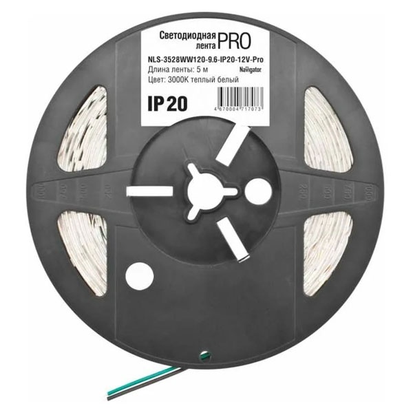 Светодиодная лента NLS-PRO мощностью 9,6 Ватт на метр, с напряжением 12 Вольт, теплый белый свет, ширина ленты 8 мм, длина в ролле 5 метров 71707