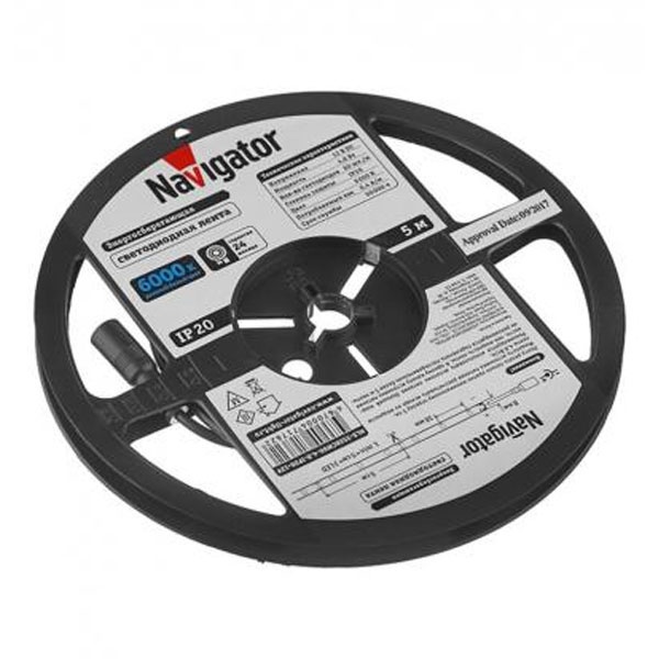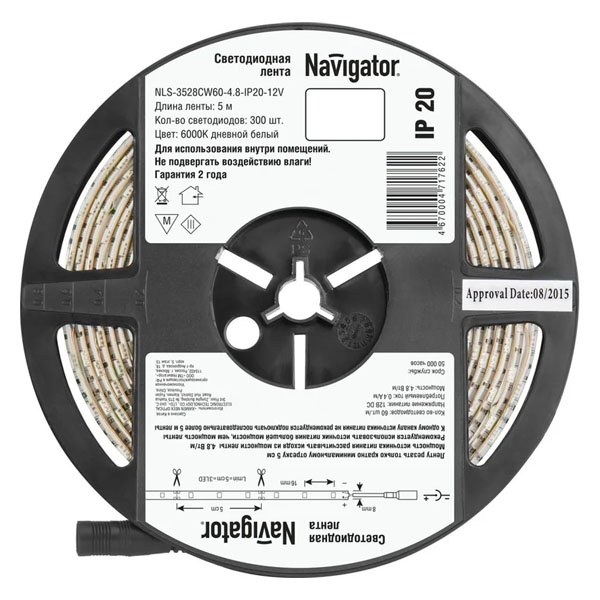• Светодиодная лента Navigator 71 762 NLS-3528СW60-4.8-IP20-12V R5 4,8W 6000K (бухта 5m)
