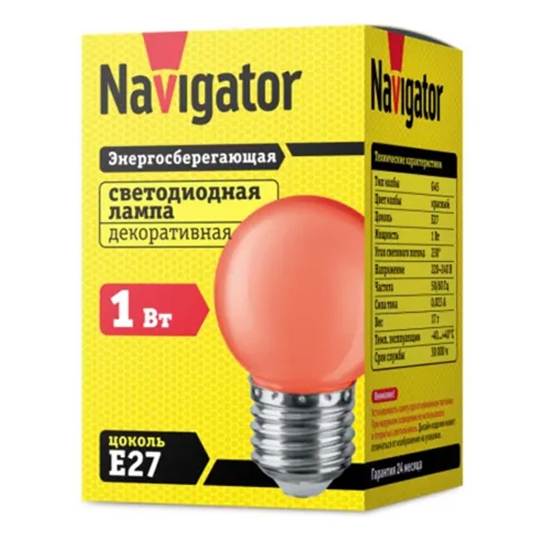 Светодиодные энергосберегающие лампы декоративного освещения Navigator серии NLL-G45-1. Колба лампы выполнена в форме шара. Поверхность колбы матовая, цветная. Идеальное решение для декоративного освещения.