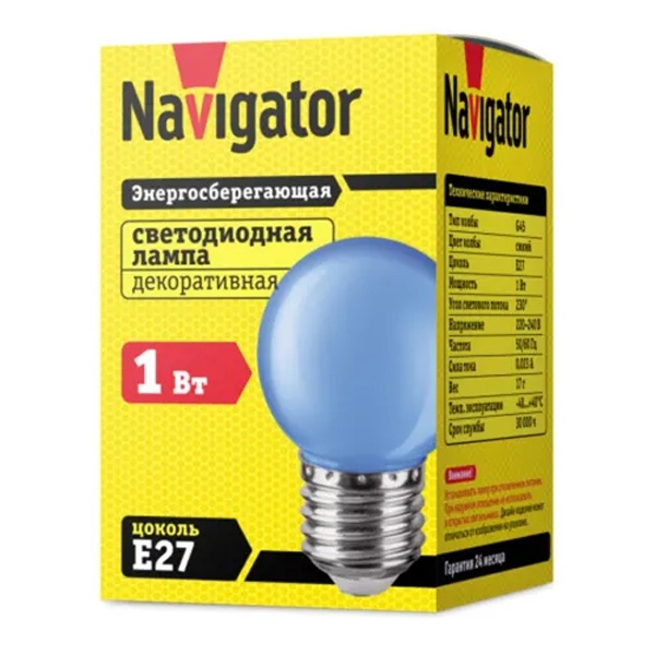 Светодиодные энергосберегающие лампы декоративного освещения Navigator серии NLL-G45-1. Колба лампы выполнена в форме шара. Поверхность колбы матовая, цветная. Идеальное решение для декоративного освещения.