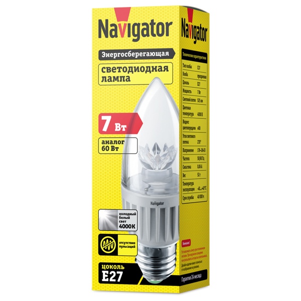 Лампа светодиодная свеча с цоколем E27 – это энергоэффективное и долговечное осветительное устройство, разработанное на основе светодиодной технологии. Она предназначена для использования в домашнем и коммерческом освещении, идеально подходит для общего освещения, создания атмосферы или декоративного эффекта.
