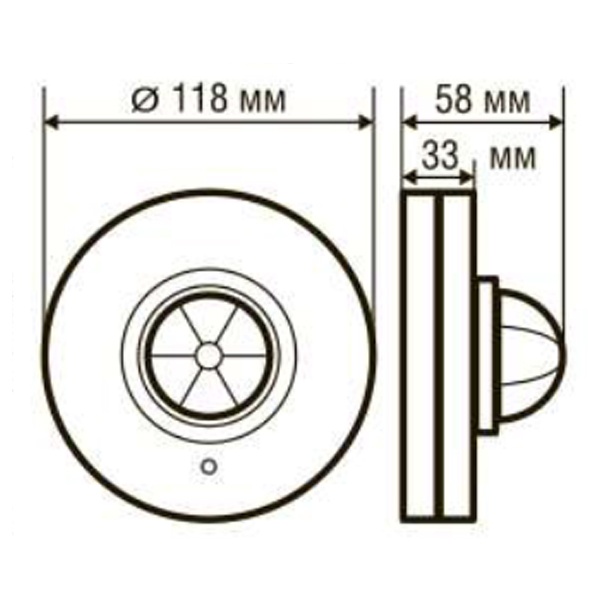 Датчик движения потолочный с углом обзора 360°, дальность обнаружения 6 метров, диапазон уровня освещенности 5-2000 лк 71963