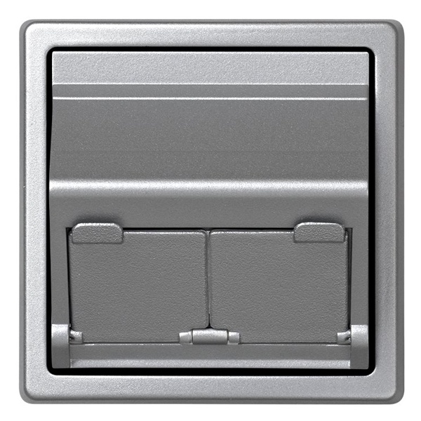 Адаптер Simon 73 Loft на 2 коннектора RJ45(12) наклонный без вкладышей, алюминий 73086-63