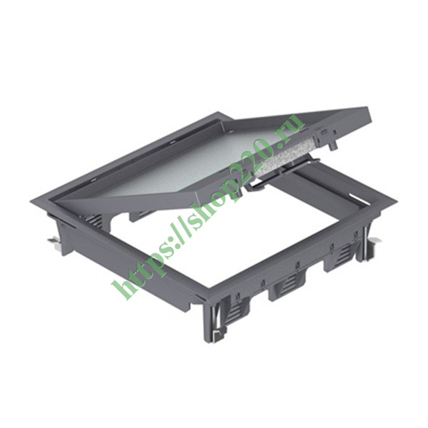 Лючок для 12 электроустановочных изделий серии Modul 45 в 3-х монтажных коробках GB3, для установки в системах кабельных каналов и в двойном полу. В комплекте с универсальным крепежным уголком с диапазоном регулирования до 65мм. С защитной рамкой для напольного покрытия, откидной крышкой и кабельным выводом из полиамида.