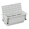 Лючок для 3 электроустановочных изделий серии Modul 45 в 1 монтажной коробке GB2, для установки в системах кабельных каналов. С универсальным крепежным уголком. Защитная рамка для кромки напольного покрытия, откидная крышка и кабельный вывод из полиамида.