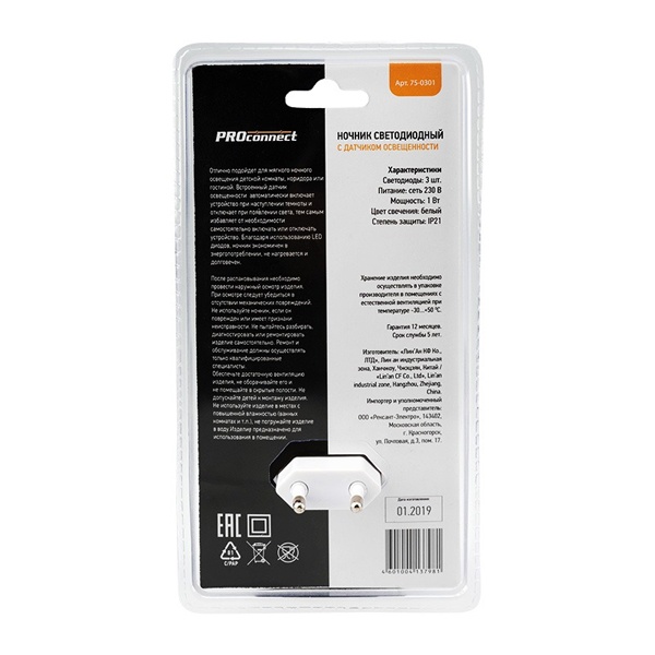 Светодиодный ночник со встроенным датчиком «день-ночь» избавит вас от необходимости самостоятельно включать устройство, когда стемнеет. Сделан из надежных и долговечных материалов и прослужит вам долго.