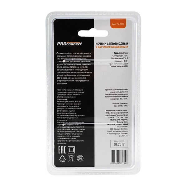 Светодиодный ночник со встроенным датчиком «день-ночь» избавит вас от необходимости самостоятельно включать устройство, когда стемнеет. Сделан из надежных и долговечных материалов и прослужит вам долго.