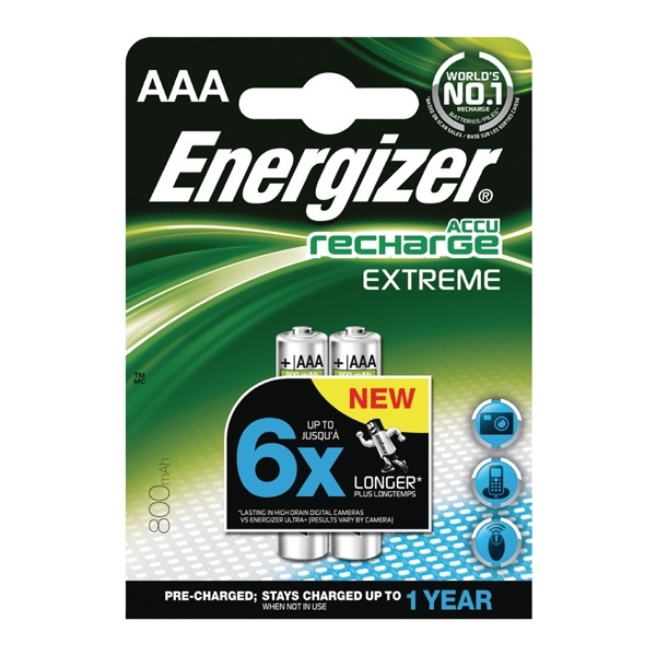 • Инновационные аккумуляторы Energizer Extreme созданы с использованием переработанных перезаряжаемых батарей