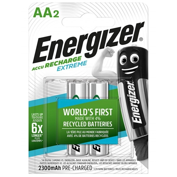 • Инновационные аккумуляторы Energizer Extreme созданы с использованием переработанных перезаряжаемых батарей