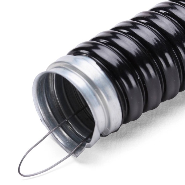 Влагозащищенный гибкий кабельный рукав РЗ-ЦП НГ-LS 32мм из оцинкованной стали в оболочке ПВХ с зондом для защиты электропроводки 76650