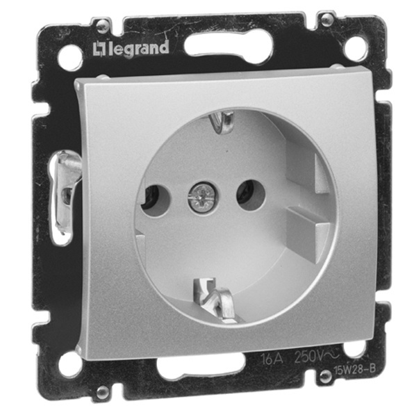770120 Розетка Legrand Valena с заземлением алюминий фото 1