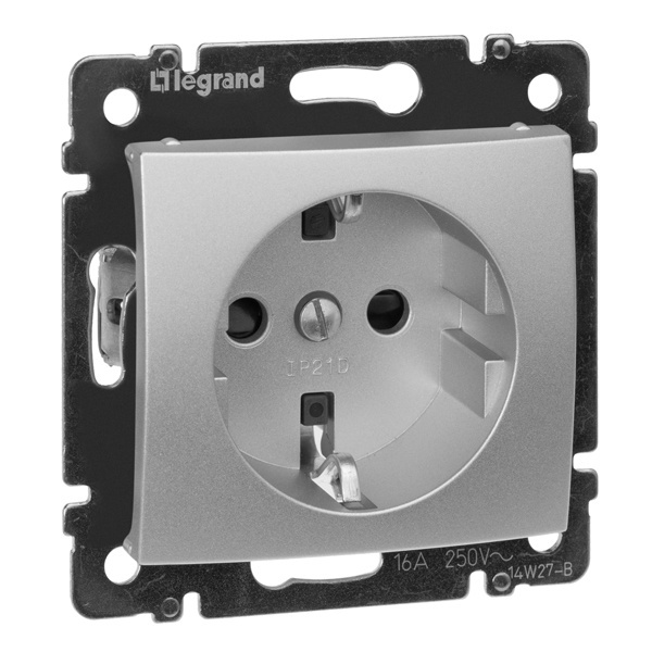 Розетка с заземлением с защитными шторками Legrand серии Valena 16А 250В, винтовые клеммы. Цвет - алюминий. 770121