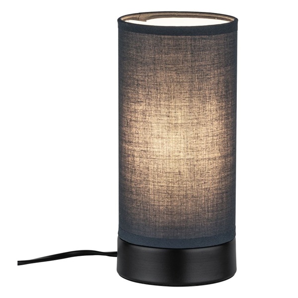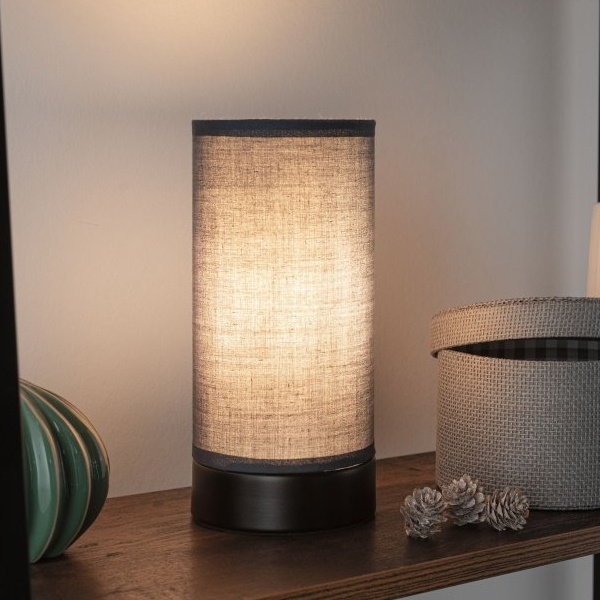 Современный дизайн, настольная лампа Pia с матовым черным основанием и абажуром из темно-серой ткани привлекает внимание. Он идеален в качестве прикроватной лампы.