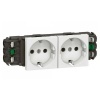 077432 Розетка Legrand Mosaic 2х2К+З с суппортом для DLP (крышка 65мм) автозажим 4М, белая