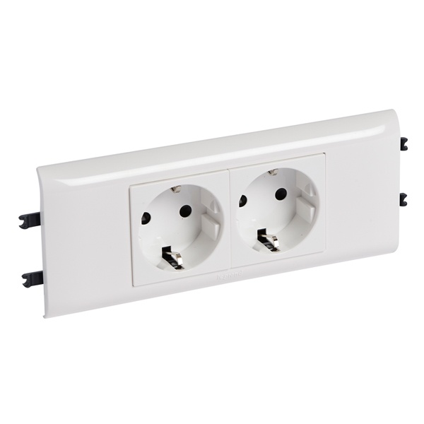 Розетка 2-м 4мод. Mosaic 16А IP40 2х2P+E с заземл. немецк. стандарт с суппортом безвинт. клеммы для кабель-канала DLP бел. Leg 077432