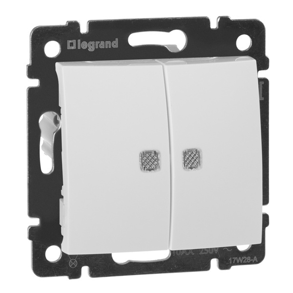 Двухклавишный выключатель с подсветкой Legrand серии Valena 10А 250В. Цвет - белый 774428