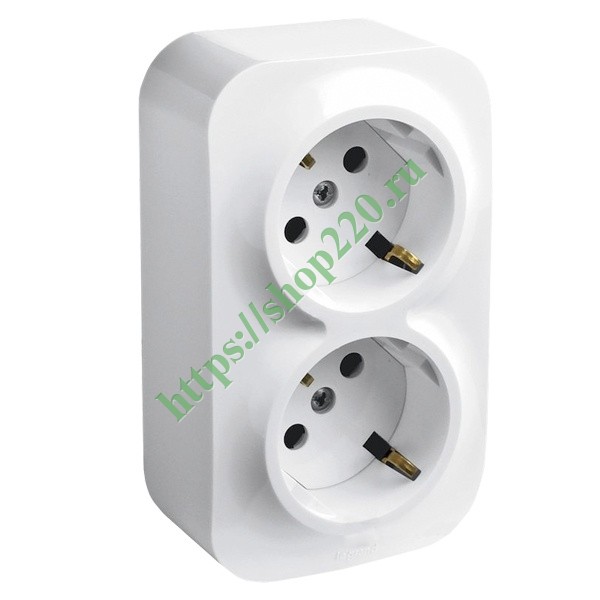 Розеточный блок 2x2К+З (с контактом заземления) без шторок белый Legrand Quteo 782213